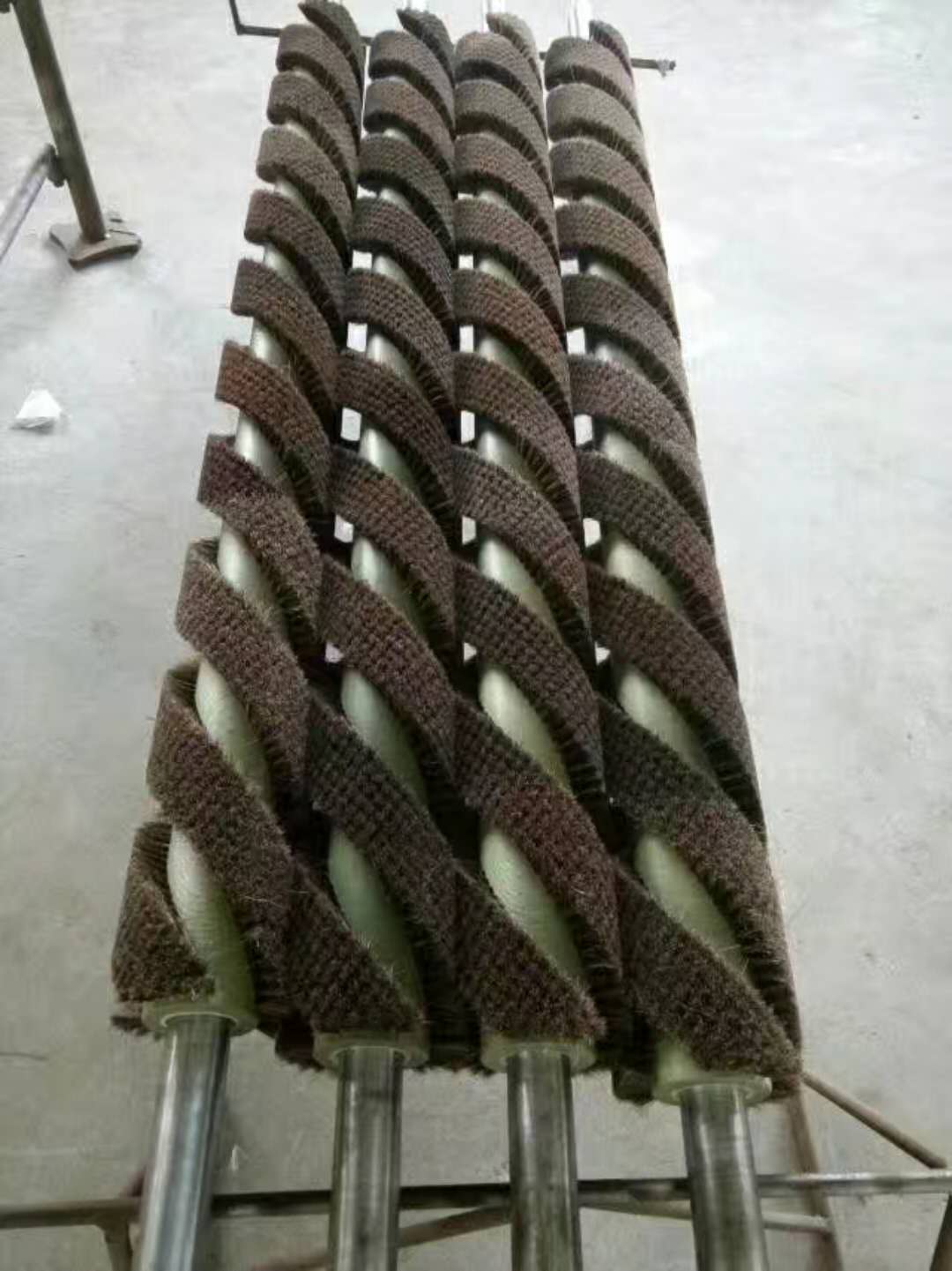 - 豬鬃毛刷輥:主要是特殊工藝使用時要求耐高溫、彈性好、硬度高、抗磨損的作業,比如紡織行業的燒毛機、分幅機。